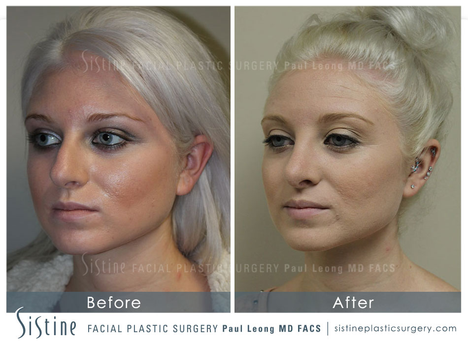 The oblique views demonstrate how her new nose blends with her face in a more harmonious way. The nose should be a compliment, not a distraction, from the other attractive elements of the face.